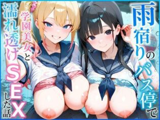 雨宿りのバス停で学園美女と濡れ透けSEXした話【ぱにぱに】【エロ漫画】【エロ同人】